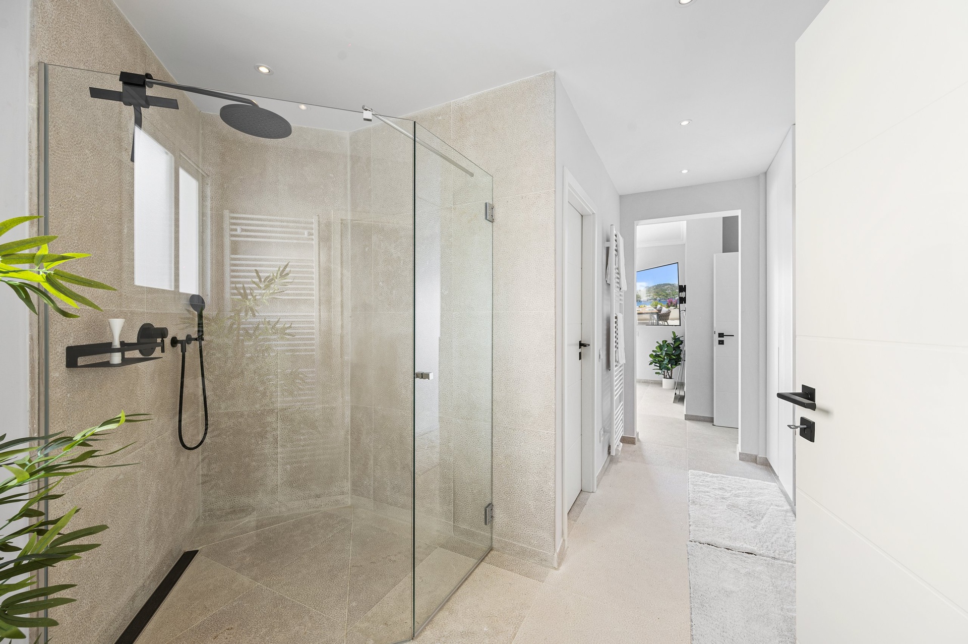 Ve střední úrovni vily se nachází ložnice s vlastní koupelnou a přímým vstupem na soukromou terasu. V nižší úrovni jsou dvě další ložnice, každá s vlastní koupelnou a přístupem na terasu, která je vybavena venkovní kuchyní. Najdete zde také bazén. Obě ložnice nabízejí nádherný výhled na pláž a moře. Vila je orientována na jih, což zajišťuje optimální množství slunečního světla po celý den. Další terasa se nachází na úrovni zahrady.