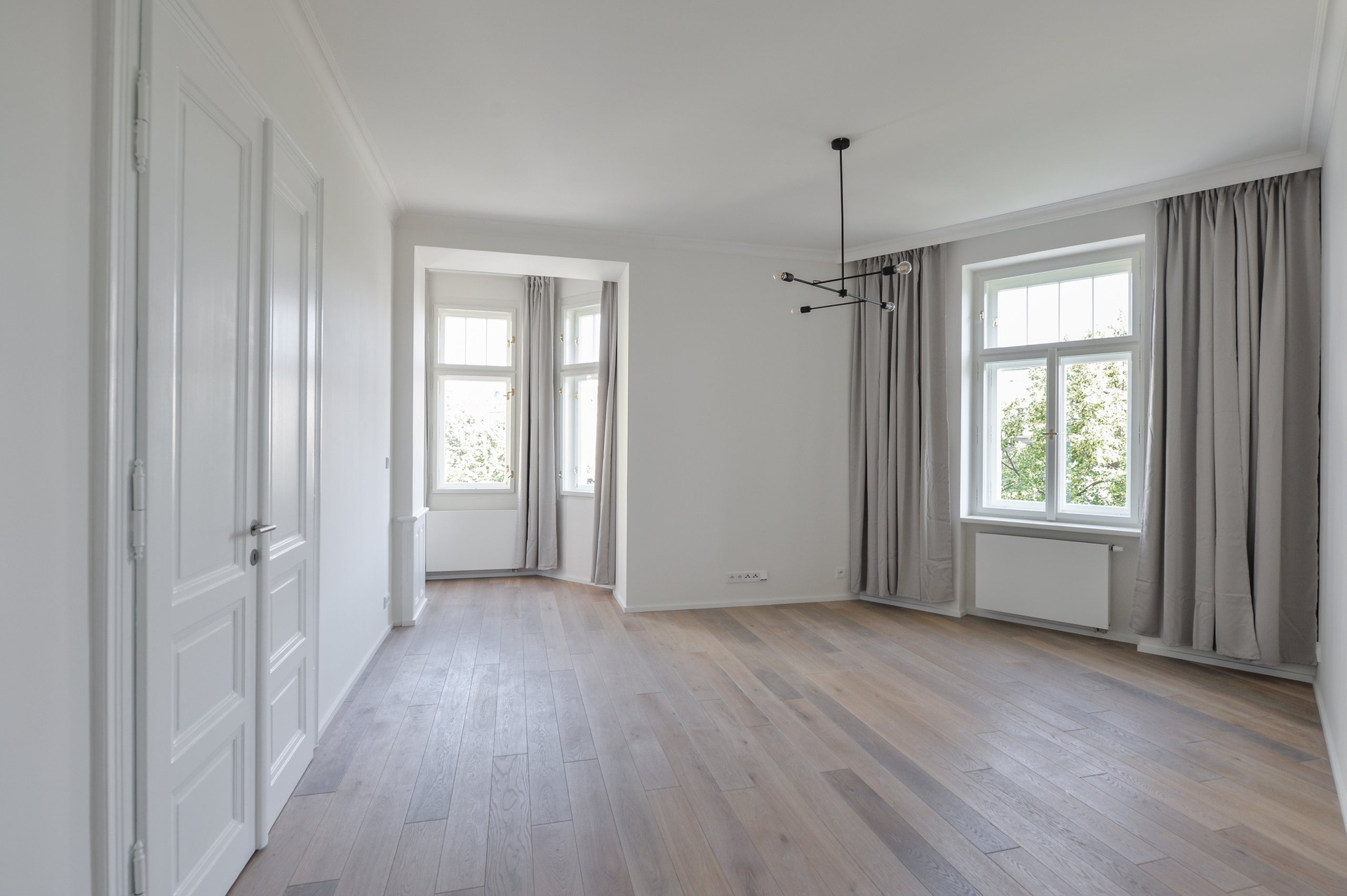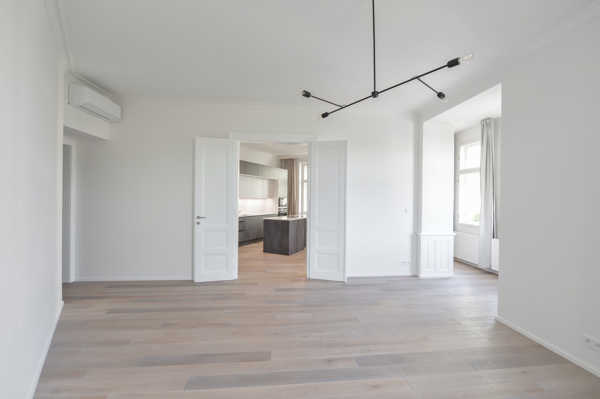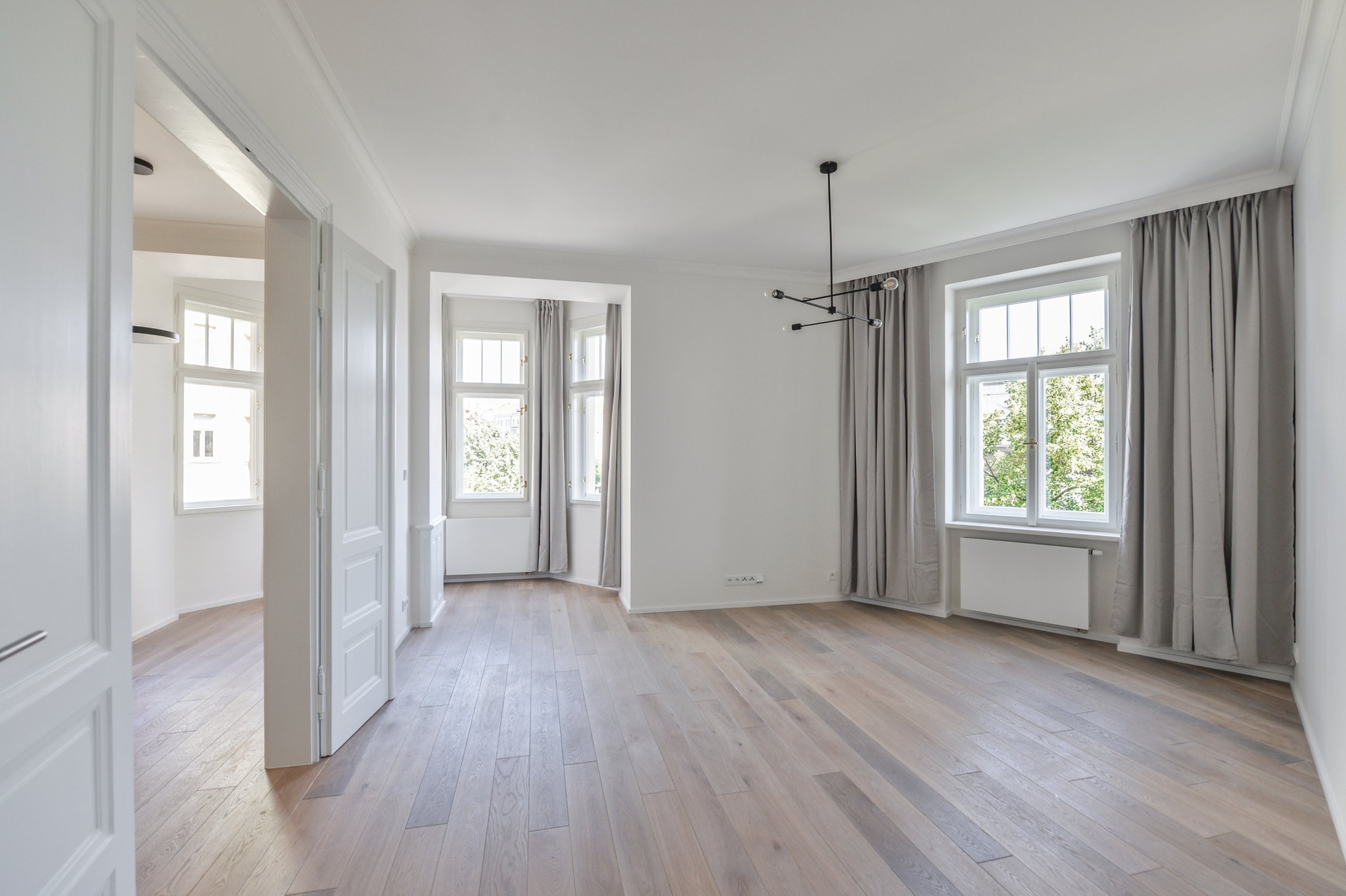 Rekonstrukce bytu proběhla ve vysokém standardu a byly zde použity nejkvalitnější materiály. Repasované dřevěné parkety, nová okna s dvouvrstvým sklem. Klimatizace ve všech místnostech.