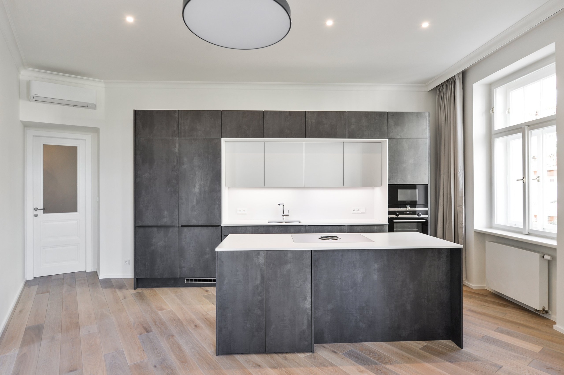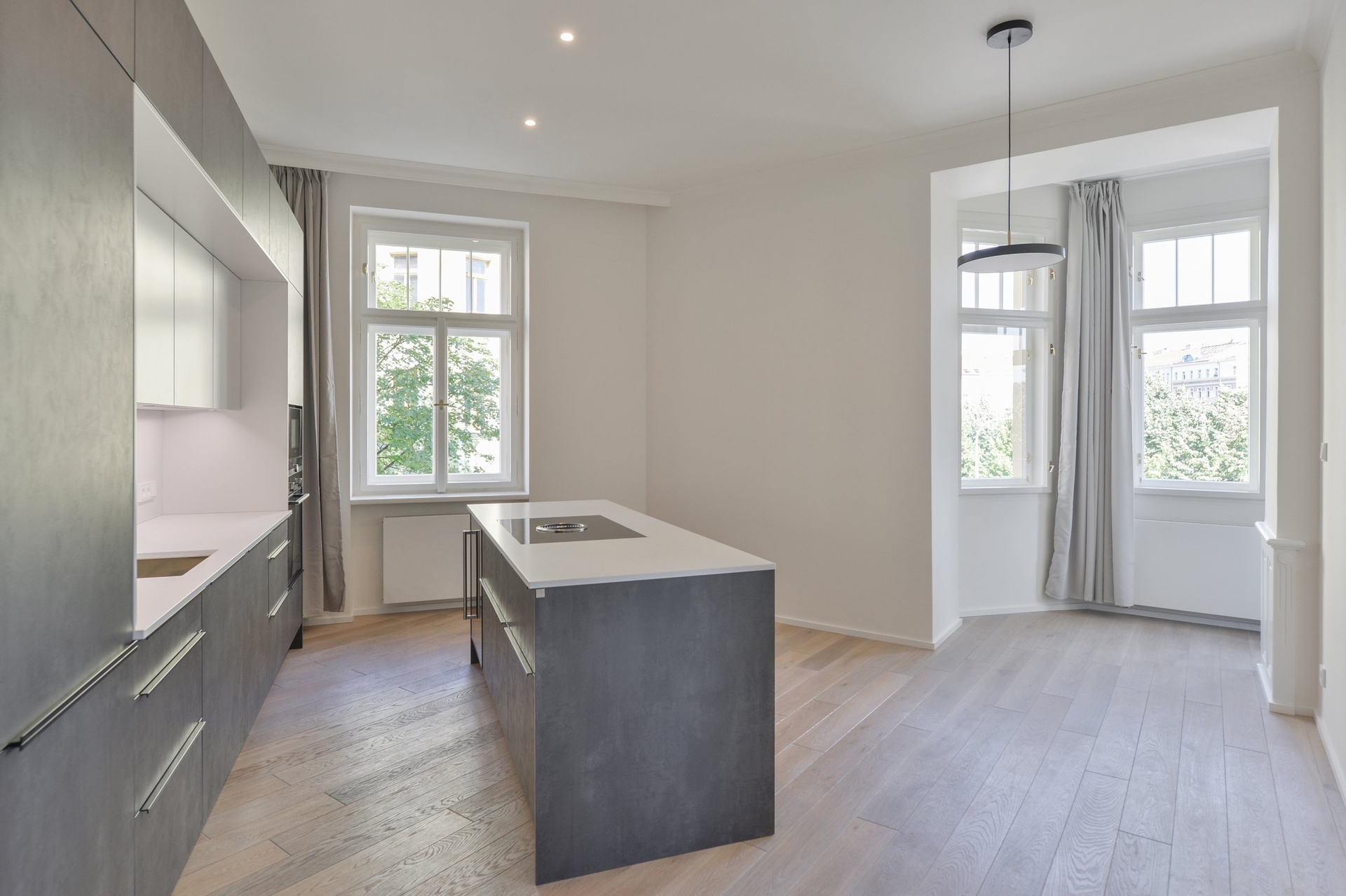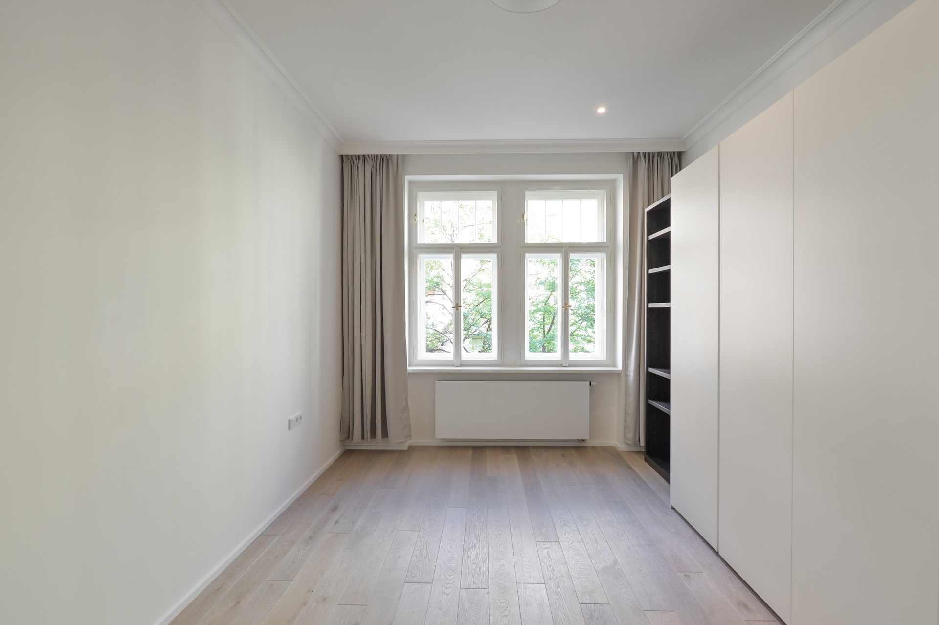 Rekonstrukce bytu proběhla ve vysokém standardu a byly zde použity nejkvalitnější materiály. Repasované dřevěné parkety, nová okna s dvouvrstvým sklem. Klimatizace ve všech místnostech.