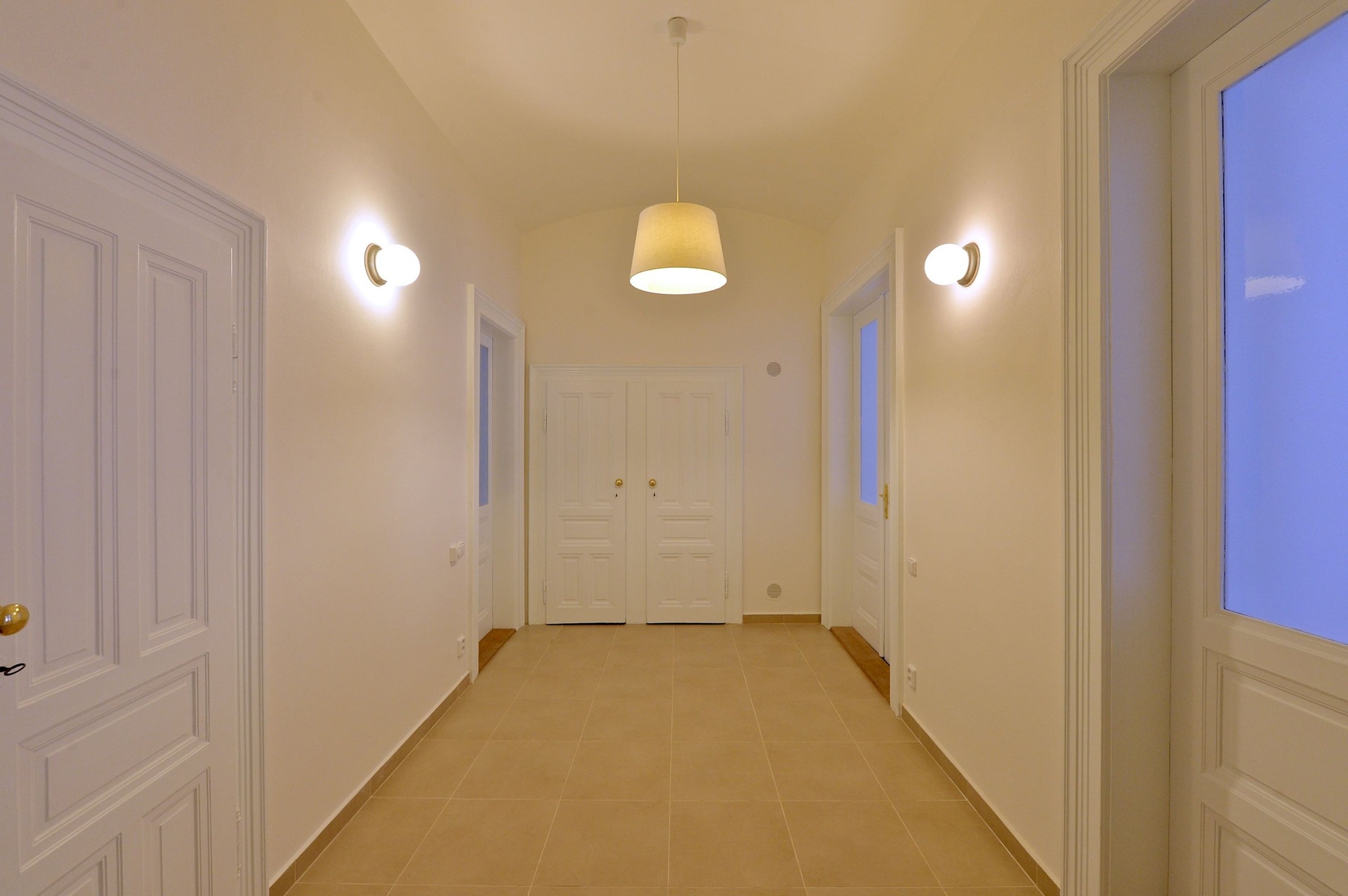 Rekonstrukce bytu proběhla ve vysokém standardu a byly zde použity nejkvalitnější materiály. Dubové dřevěné podlahy a kvalitní velkoformátová dlažba. Nová okna s dvouvrstvým sklem. Klimatizace ve všech místnostech. Podlahové vytápění v koupelnách. Vestavěné skříně a množství úložných prostor. Byt lze kompletně dovybavit nábytkem za vyšší nájemné.