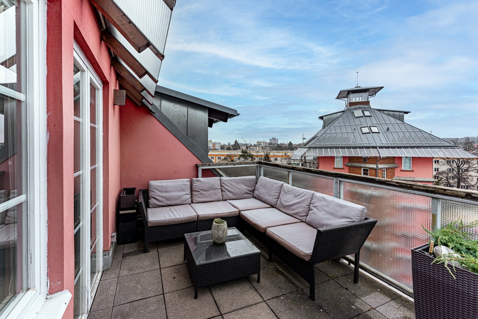Nabízíme k pronájmu designový mezonetový byt o ploše 120 m² plus terasy (12 m² a 4 m²) v obou úrovních bytu. Nemovitost se nachází v žádané lokalitě Prahy 6 na Veleslavíně v nejvyšších patrech domu s výtahem (6. a 7. NP) . Byt je slunný, s jižní orientací a krásnými výhledy na oboru Hvězda. Je součástí originálního areálu Hvězda od architekta V. Miluniče. V domě jsou podzemní garáže a k bytu v nich náleží 2 parkovací stání (v ceně pronájmu). Metro Petřiny je vzdáleno minuty chůze.