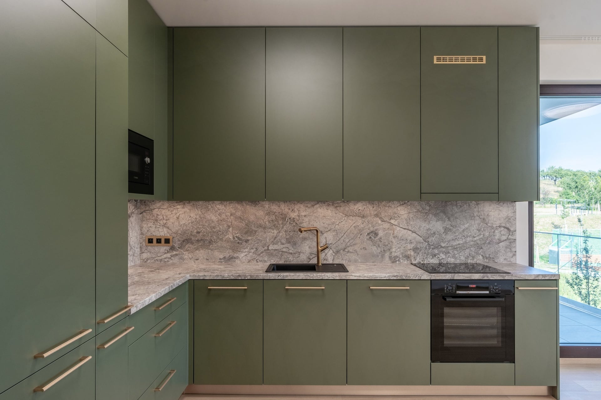Byt bude částečně vybaven vestavěnými skříněmi. Kuchyňská linka včetně spotřebičů je samozřejmostí. Pro více informací o interiéru a dalších dostupných bytech v projektu kontaktujte makléře.