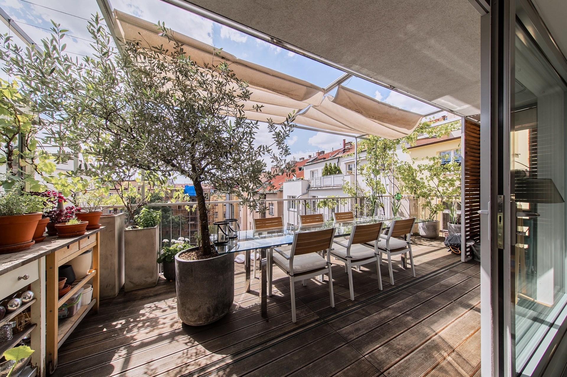Nabízíme k pronájmu prostorný mezonetový byt se třemi terasami v dispozici 4+kk o celkové užitné ploše 467 m². Byt je situován na 6. a 7. podlaží zrekonstruovaného činžovního domu s výtahem v atraktivní části Prahy 3 na Vinohradech.