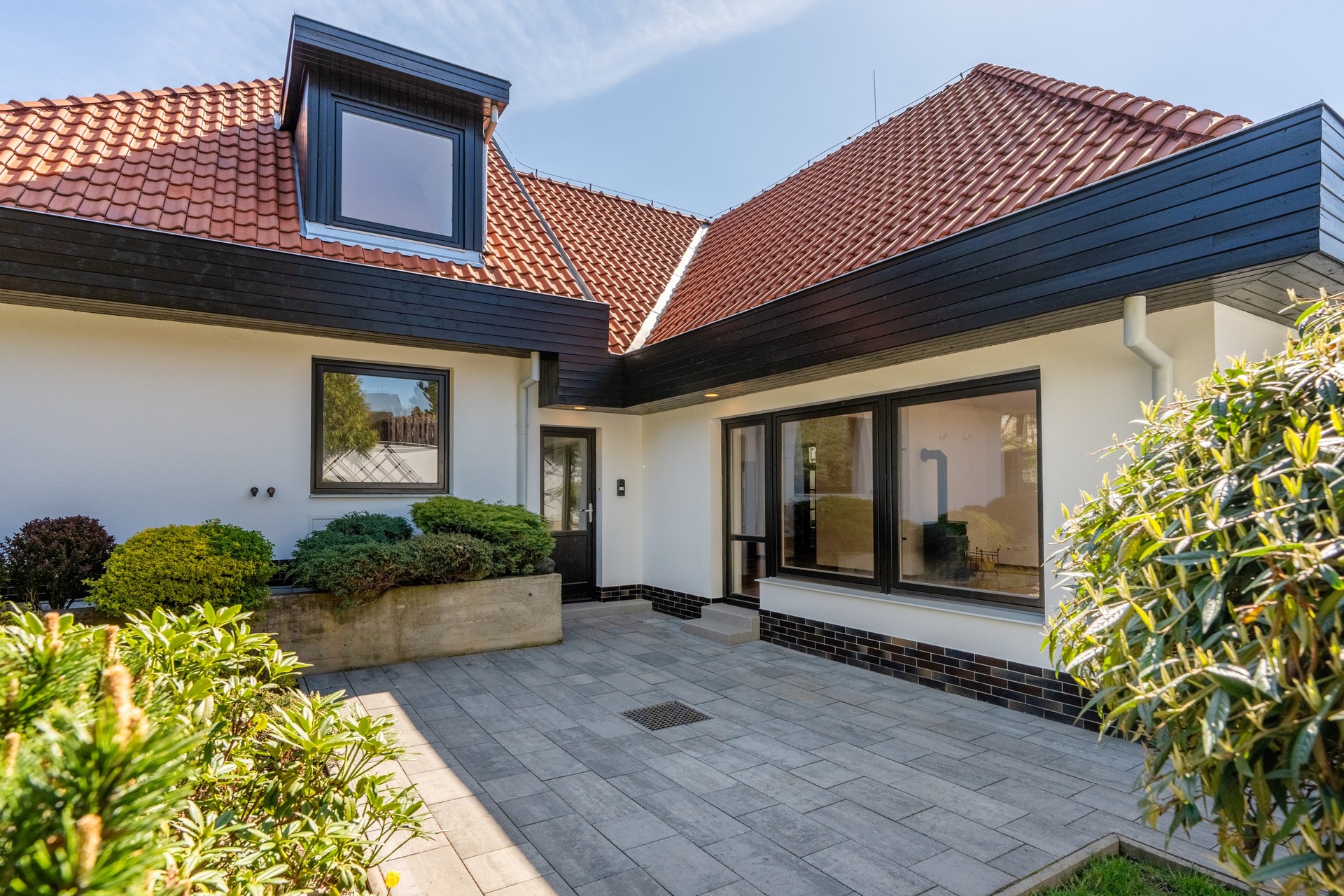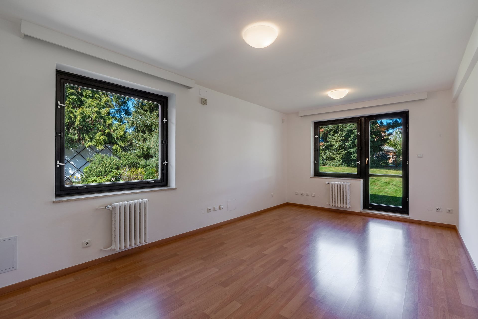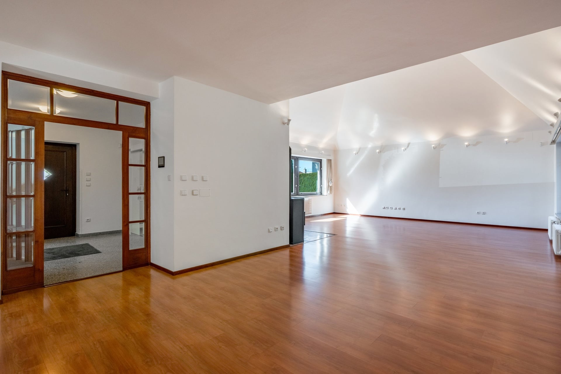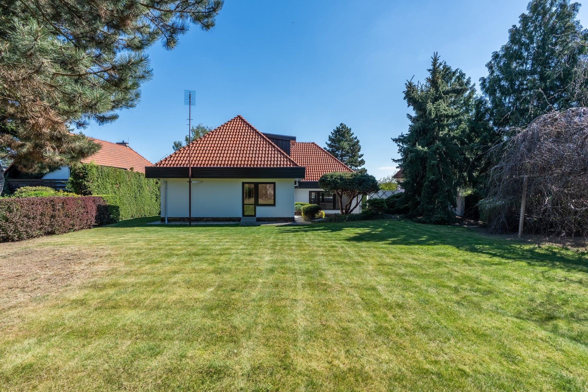Na podlahách obytných místností jsou parkety. V domě nechybí internet, zabezpečovací systém, satelitní anténa a lze ho pronajmout vybavený či bez zařízení.