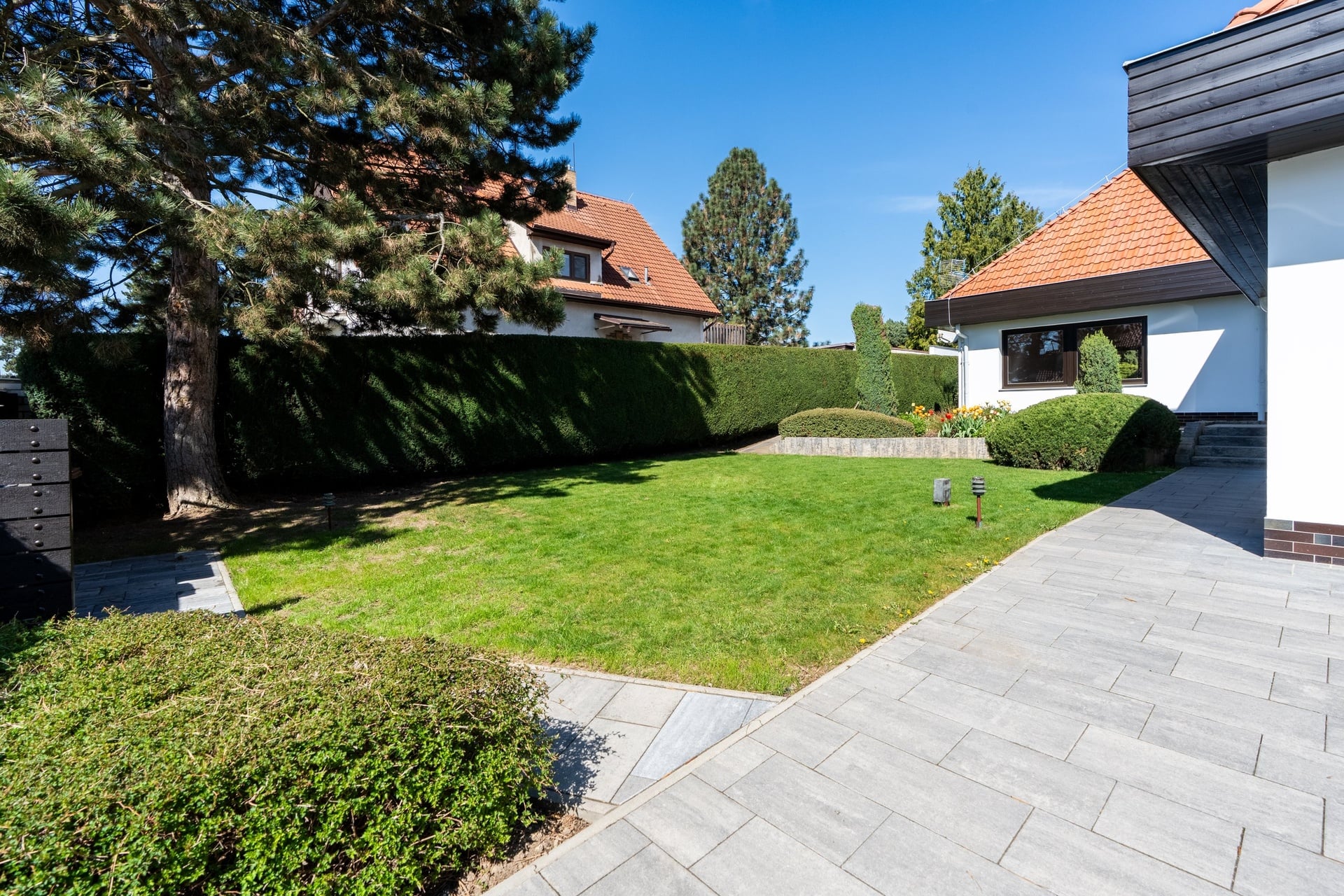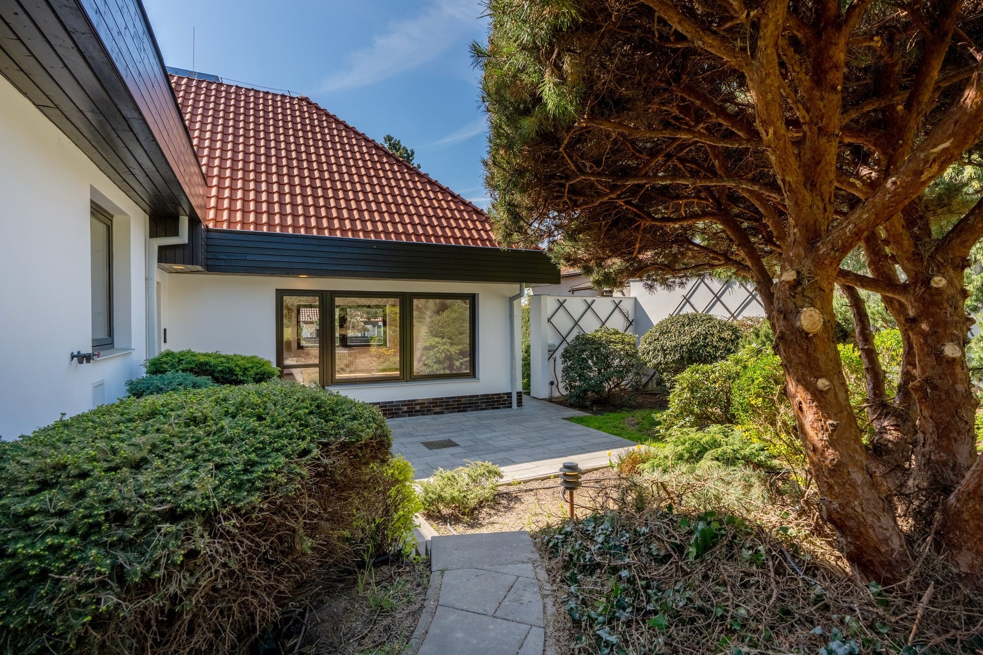 Nabízíme pronájem luxusního a prostorného rodinného domu v klidné lokalitě vilové čtvrti v Praze 4 – Kunraticích. Dům je zasazen v krásné zahradě s plochou 1000 m² a skýtá tedy dostatek soukromí. Na pozemku jsou dvě venkovní parkovací místa, další parkovací místo je s přístřeškem, dům disponuje jednou garáží, dostatek parkovacích míst je i před pozemkem na ulici.