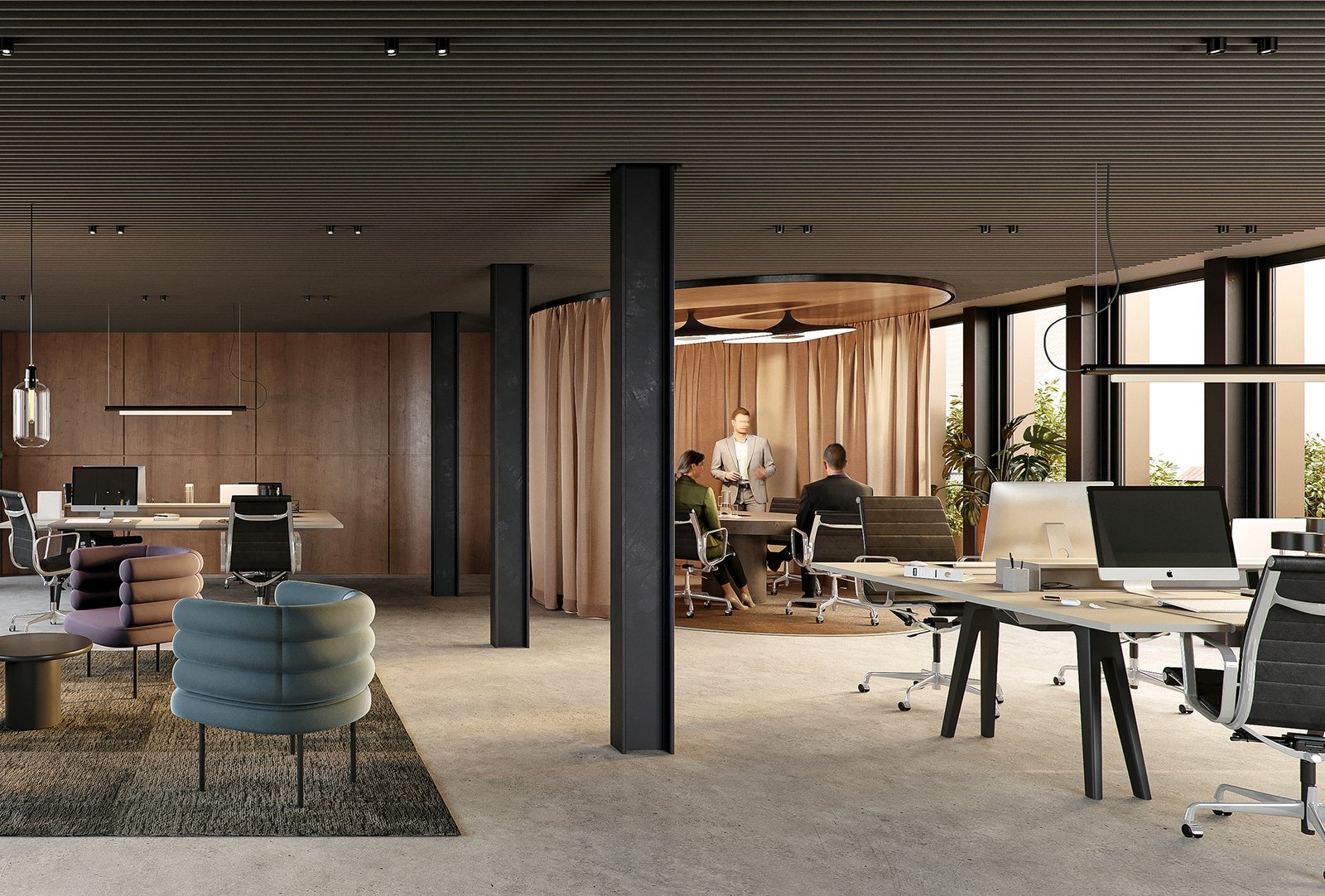 Kanceláře jsou navrženy s důrazem na flexibilitu – umožňují libovolné členění na uzavřené místnosti i otevřený open-space koncept. Každá jednotka disponuje vlastním sociálním zázemím, kuchyňkou a samostatnou serverovnou, což zajišťuje vysoký komfort při práci. V historické části budovy (2.–6. patro) jsou zachovány původní architektonické prvky, přičemž nenosné příčky lze snadno upravit dle individuálních požadavků nájemce. Vzniká tak inspirativní prostředí, které elegantně propojuje historickou atmosféru s nejmodernějšími prvky.
