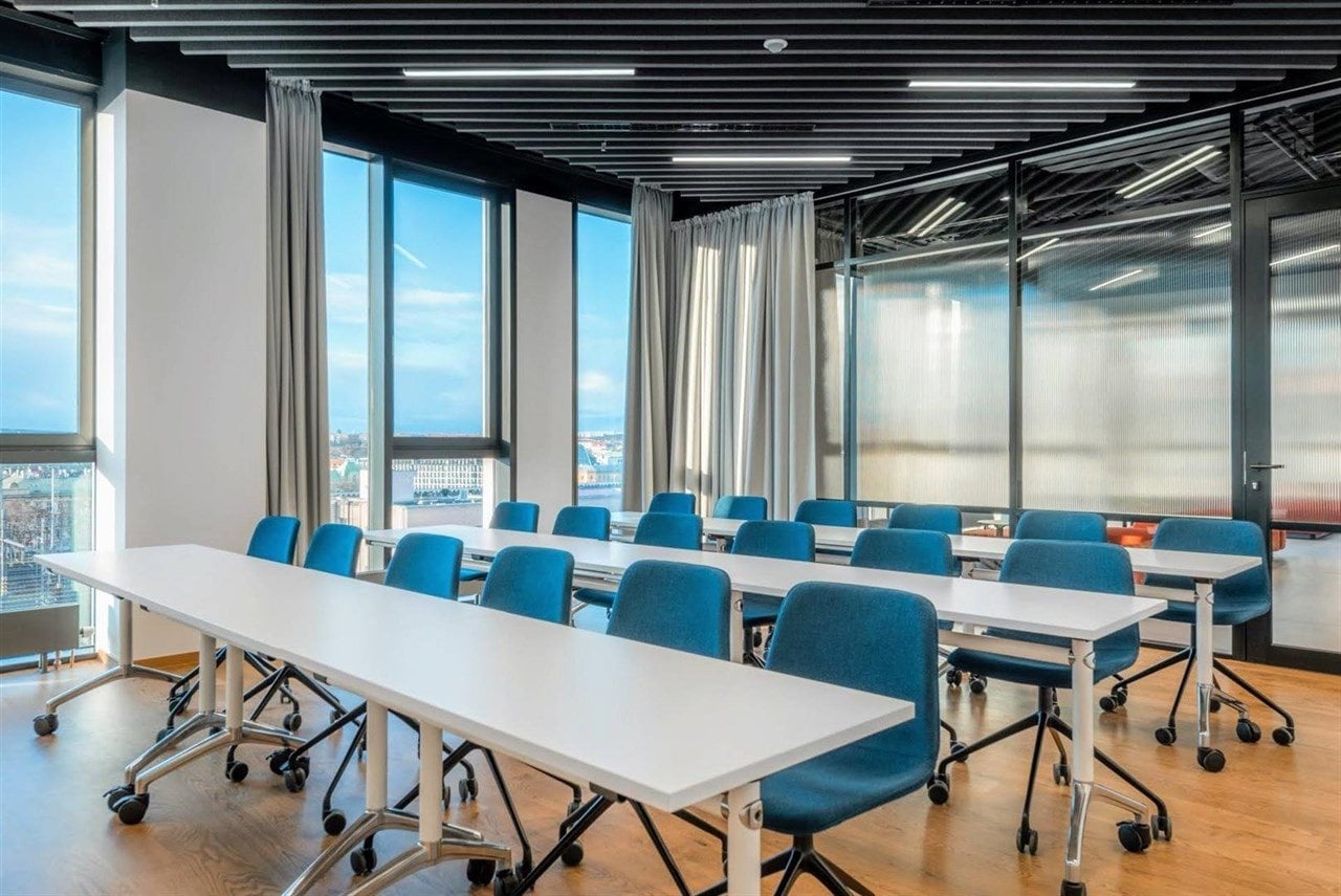 Součástí jsou obsáhlé reprezentativní relaxační zóny, open space prostor pro práci nebo neformální schůzky. Samozřejmostí je možnost využívání několika zasedacích místností v ceně nájmu. Vám i Vašim klientům jsou k dispozici plně vybavené kuchyňky s neomezenou konzumací kávy, čaje a vody.