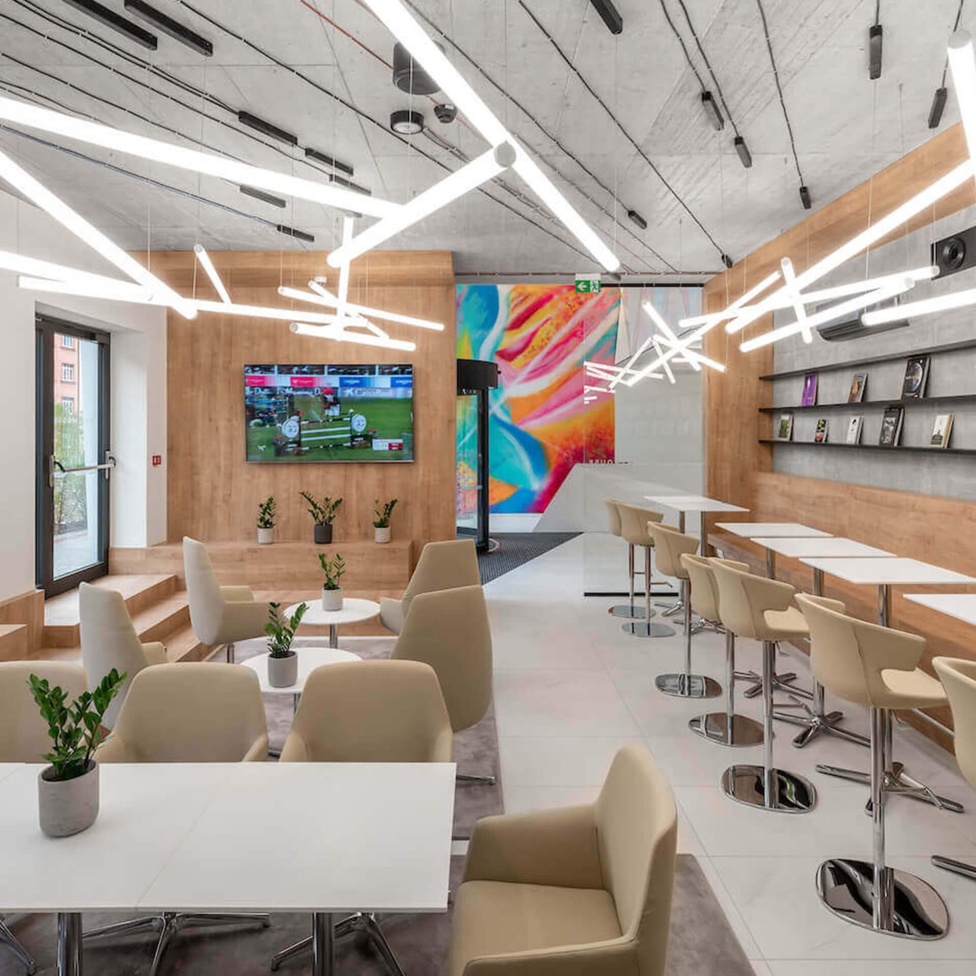 Dále zdvojené podlahy, venkovní žaluzie, otevíratelná okna, CCTV, EPS, dobíjecí stanice na elektromobily v garážích, moderní výtahy, flexibilní možnost členění prostorů.