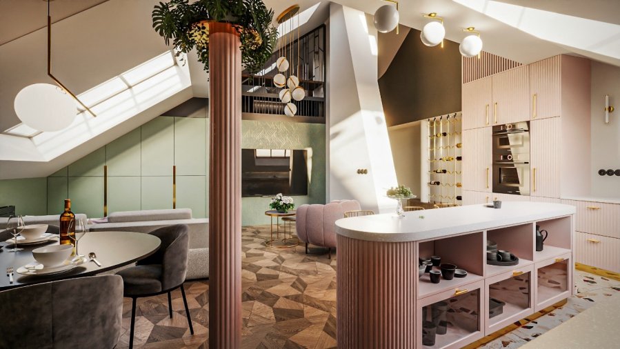 Jednotlivé loftové byty, vestavěné do půdního prostoru velkorysého domu, se odlišují interiérovým stylem – první se nese v industriálním designu, druhý v art deco a třetí v minimalismu s možností úprav dle vlastních preferencí. O všechny se postaral architektonický atelier krea.tier.